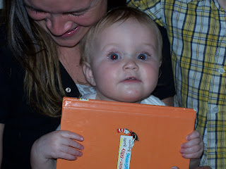 I have to tell about a sickness I have. It's called the uncontrollable giggles. When they come, they come with full force. Here's the story...I had my mom help me wrap some gifts for Porter and Kadi as I was finishing decorating the birthday cakes. I put Kadi's stuff in a pile and Porter's stuff in another pile, then went back to decorating. As we got to opening presents I started helping Kadi unwrap this "gift" and realized that it was one of the boys books that just happened to be under Kadi's pile of presents. My mom didn't know that it wasn't a gift and wrapped it so nicely for me. (Thanks MOM!) I just thought it was so funny that I couldn't help but laugh. I wasn't the only one, though. Stay tuned!